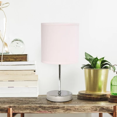 11.81″ Traditional Petite Metal Stick Bedside Table Desk Lamp In Chrome With Fabric Shade Blush – Creekwood Home