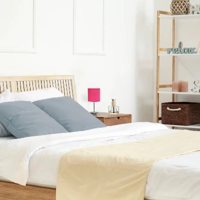 11.81″ Traditional Petite Metal Stick Bedside Table Desk Lamp In Chrome With Fabric Shade Vibrant Pink – Creekwood Home