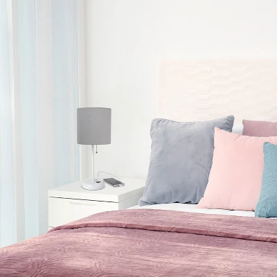 19.5″ Bedside USB Port Feature Metal Table Desk Lamp White With Gray Fabric Shade – Creekwood Home