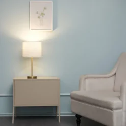Matte gold paired with a classic white linen drum shade and a minimalist design, the Versa Table Lamp by Globe Electric has it all. The metallic finish is pefect for bringing an on-trend accent light into your space. The 19-inch height is ideal for a bedside table, a living room table or a side table in your den. The white shade offers a perfect glow depending on the bulb color temperature you choose. Try a bright 5000-kelvin bulb to create a white task light or utilize a 3000-kelvin bulb for a warm ambient light. The choice is yours!