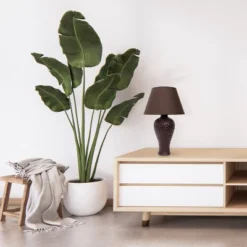- Includes 1 x empire shaped brown fabric shade for a warm, inviting feel