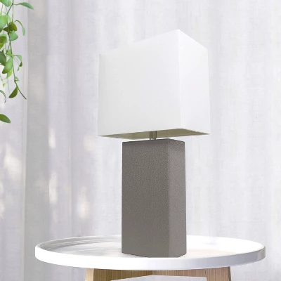 21″ Lexington Leather Base Modern Home Decor Bedside Table Lamp With Fabric Shade – Lalia Home