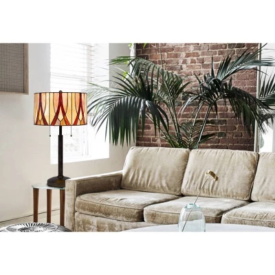Cal Lighting Tiffany Art glass 24″ metal table lamp. Add a pop of color with this striking colored glass floor lamp. It features a patterned hand painted tiffany glass shade with a slim dark tone metal pole lamp body. It has a circular weighted base for added stability. This lamp uses 2 60W bulbs (not included). This table lamp ships in one carton.