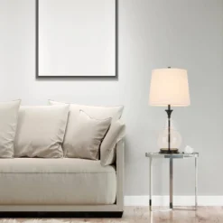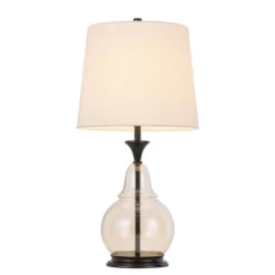 Cal Lighting makes this Contemporary glass body table lamp with metal base and matching drum fabric shade. This amber colored glass Ginger Jar lamp has a base in Dark Bronze finish. This lamp uses one 150 watt 3-way bulb (bulb is not included.) Imagine how this table lamp will look great in your dining room, living room, bedroom, kitchen, family room, or office.