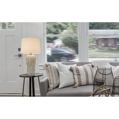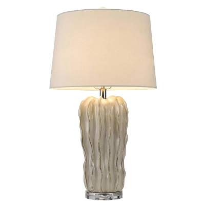 Cal Lighting’s Montpelier Contemporary 28″ glass table lamp. Add an artsy touch to your space with this eye catching milky white glass table lamp. It features a curvy silhouette with an elegant rippled effect. This lamp ships complete with a crisp white fabric shade and matching ball finial. This lamp uses a 150W 3-way bulb (not included). This lamp ships in one carton.