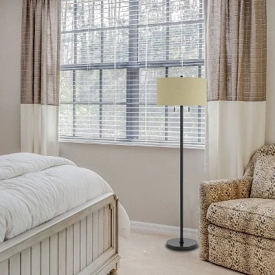 Cal Lighting makes this Contemporary metal 59″ floor lamp in Dark Bronze finish. The Tan drum shade completes this classic look. This lamp has dual pull-chain sockets that use 60W bulbs (not included). One or two of these floor lamps will be a great addition to your office, living room, family room, or bedroom.