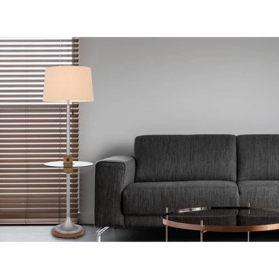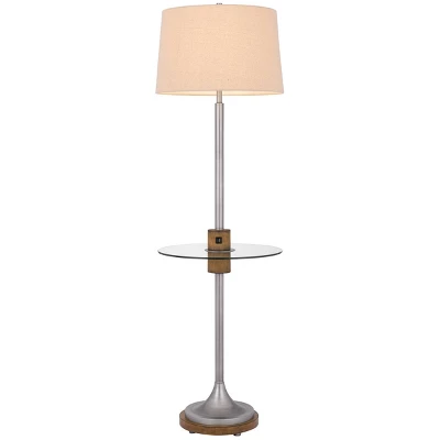 Cal Lighting’s Lavaca 61″ tall metal and wood floor lamp with a glass tray table is in Brushed Steel finish. Brighten up your space with this stylish lamp. It features USB and USB C charging ports and is in a Brushed Steel finish with glass tray table and wood trim. With its clean and modern aesthetic, this lamp is sure to be a great addition next to your favorite reading chair or sofa. This lamp uses a 150W 3-way bulb (not included). This lamp ships in one carton.