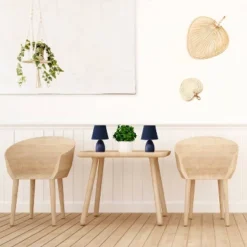 9.45″ 2pk Petite Ceramic Oblong Bedside Table Desk Lamps With Matching Tapered Drum Shade Blue – Creekwood Home