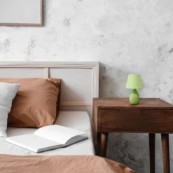 9.45″ Petite Ceramic Oblong Bedside Table Desk Lamp With Matching Tapered Drum Shade Green – Creekwood Home