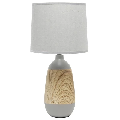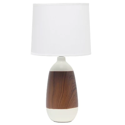 Natural Wood Interlocked Triangular Table Lamp With Fabric Shade White – Simple Designs