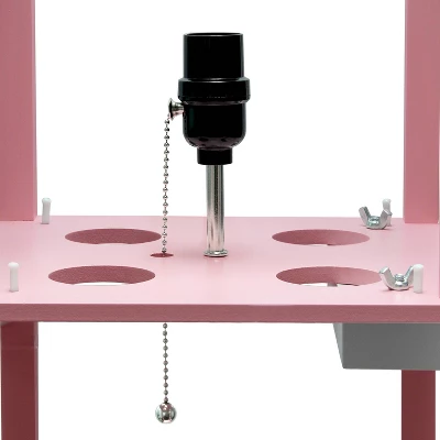 Hammered Metal Organizer Table Lamp With USB Charging Port And Fabric Shade – Simple Designs