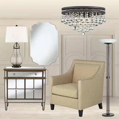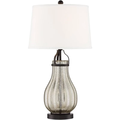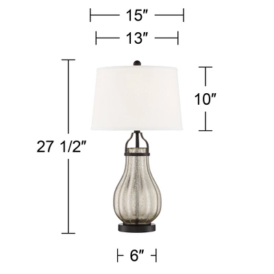 Franklin Iron Works Arian Rustic Farmhouse Table Lamp 27 1/2″ Tall Oil Rubbed Bronze Fluted Mercury Glass White Drum Shade For Bedroom Living Room