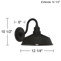 - Set of 2 outdoor lights. Each is 12 1/4″ wide x 10 1/2″ high. Extend 14 1/2″. Shades are 12 1/4″ wide x 3″ high. Weigh 4.2 lbs.