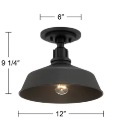 A careful balance of rusticity and elegance, this outdoor ceiling light is the perfect addition to your patio or balcony. In a classic urban barn style with a semi-flushmount design, it invokes a charmingly old-fashioned feel. A smooth black finish gives this fixture a clean, almost contemporary touch.