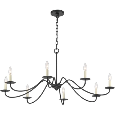 From the creatives at Franklin Iron Works™, this eight-light chandelier is a striking addition over a dining table or highlighting a welcoming foyer. It boasts a clean silhouette of eight sloping arms, each with a single white candelabra light (bulbs not included). The chandelier boasts a classic black finish, making it a versatile addition in casual, contemporary or farmhouse decor.