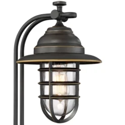 - Carriage-style light, ideal for garages or patio areas. Top curved arm detail.