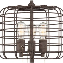 - Set of 2 rustic farmhouse table lamps featuring USB ports. From the Franklin Iron Works brand.