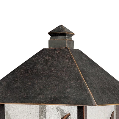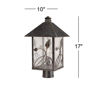 Bring the charm of a country garden to your yard or driveway with this outdoor post light from Franklin Iron Works. This lantern-style fixture comes in a bronze finish frame with seeded glass panels for a lovely old-fashioned look. A scrolling leaf-and-vine pattern runs across the sides for a beautiful decorative accent.