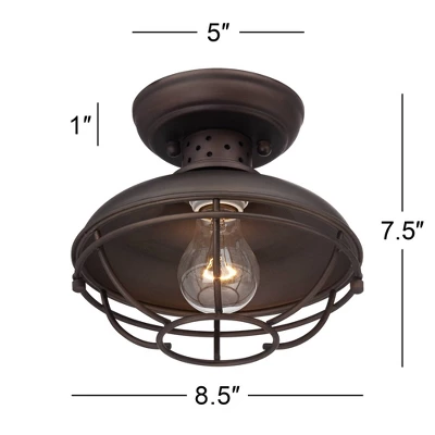 - Oil rubbed bronze finish over steel construction. Open metal cage design. Inspired by industrial and farmhouse-barn light designs.