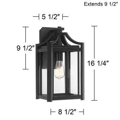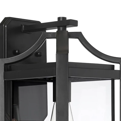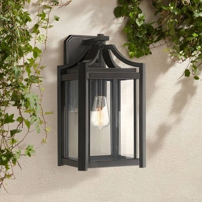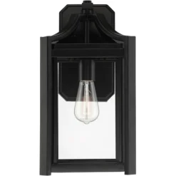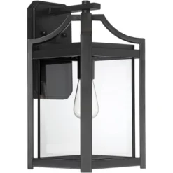 The Rockford collection by Franklin Iron Works offers a transitional style with a rustic touch. This outdoor wall light comes in a sleek black frame that holds clear beveled glass panels in between the slats. Use it to illuminate a porch, patio, garage, or side area of the house. A decorative light bulb in a charming vintage Edison style is included with this fixture.