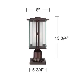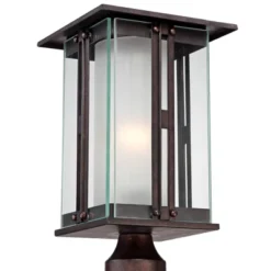 Bring stylish illumination to your yard or driveway with this outdoor post light from the Fallbrook collection. It comes in a sturdy steel frame with a rich bronze finish and features an intriguing double glass design. A frosted glass inner diffuser surrounded by a rectangular clear glass outer shade for an eye-catching dimensional look. Includes bronze finish pier mount adapter for surface mount installation. A modern update of classic Mission style lighting.