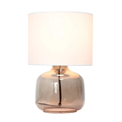 Illuminate your living space with this simple yet stylish glass table lamp. The smoke gray glass jar shaped base and white fabric drum shade is the perfect blend of charm to give your home a contemporary and modern upgrade. Perfect for living rooms, bedrooms, kids and teens, college dorms, apartments, nurseries, or offices.
