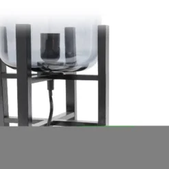 This contemporary lamp elevates the glass shade on a four-arm wood stand finished in black. The curvy cylindrical smokey glass shade combined with the geometric wood base creates the perfect ensemble. Place on a desk, nightstand, dresser or table for a modest, refined look in fashion lighting. HELPFUL TIP: To get the complete vintage look, we recommend using a decorative Edison/Vintage bulb (not included).