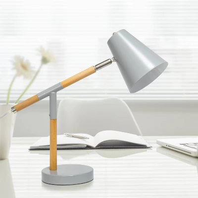 Simple yet modern this desk lamp will add a stylish touch to your home, dorm or office! The conical shade can be easily adjusted to 180 degrees that will allow easy focusing of light where it is needed the most. This lamp is made of mixed materials, this lamp is on trend!