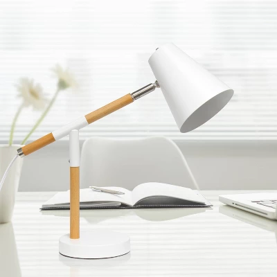 Simple and yet modern, this desk lamp will add a stylish touch to your home, dorm or office! The conical shade can be easily adjusted to 180 degrees that will allow an easy focusing of light where it is needed the most. Made of mixed materials, this lamp is on trend!