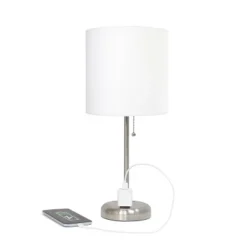 19.5″ Bedside Power Outlet Base Metal Table Desk Lamp In White Fabric Shade – Creekwood Home