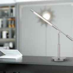 27″ Integrated Metal Desk Lamp With USB Ports (Includes LED Light Bulb) Brushed Steel – Cal Lighting