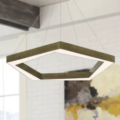 30.25″ X 64″ LED Integrated Metz Dimmable Polygon Pine Wood Pendant Brown – Cal Lighting