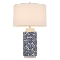 Natural Wood Interlocked Triangular Table Lamp With Fabric Shade White – Simple Designs