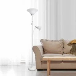 Torchiere Floor Lamp With 2 Reading Lights And Scalloped Glass Shades White – Lalia Home